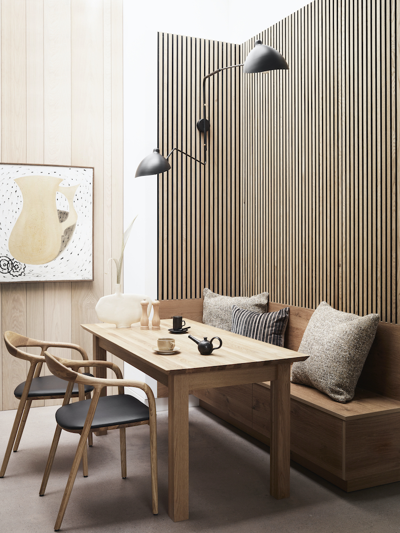 When planning, make sure seating is placed to encourage eye contact and conversation, as well as thinking about external views out to the garden and beyond. Comfort is key. Lower dining chairs offer better lumbar support for prolonged dining than bar stools for example. Banquette seats should be a little squishy but with enough firmness to stop you slouching while dining – foam cushions wrapped with a layer of soft feathers are ideal.