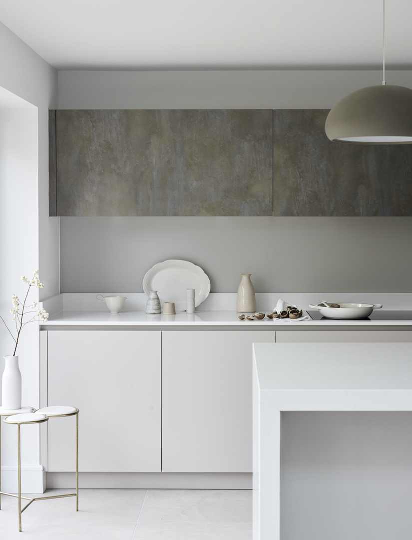 Our Winterbourneproject shows how effective white can be without stretching your budget. Using Studio cabinetry in soft cashmere as the base, the scheme is elevated by burnished metallic wall cabinets. The lightness of the cabinetry keeps the space calm, while the metallic element adds depth and plenty of personality.