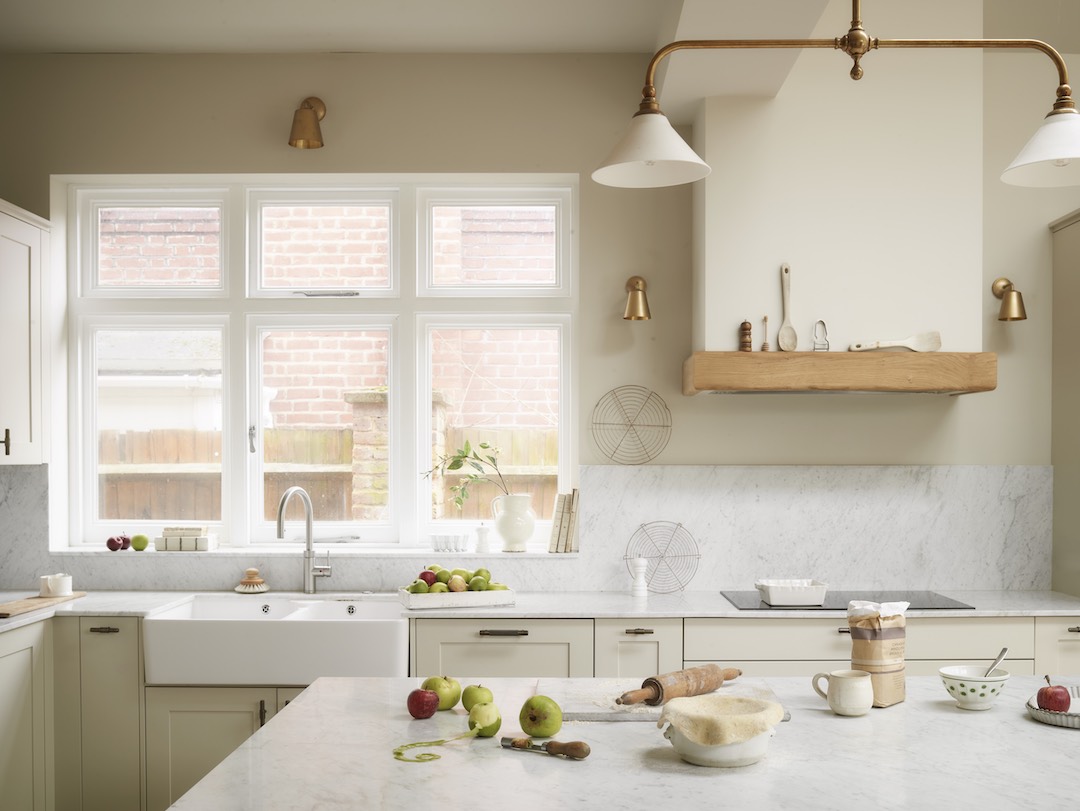 White cabinetry acts as a calming canvas that sharpens everything placed against it. Natural materials become more expressive, veining more pronounced, timber richer. It’s a particularly effective strategy if you want to bring warmth into white kitchens without relying on colour. Stone, wood and even aged metals gain a stronger presence when set against a pale backdrop, helping the overall scheme feel layered rather than flat. In our MacWilliam project, our Studio cabinetry in Portland Stone delivers a timeless, classical look, enriched via natural Carrara marble and oak. The white-based palette creates visual clarity and gives permission for the materials to breathe.
