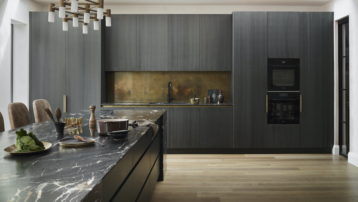 Not everyone wants an audience when they’re cooking up a storm. Installing wide, bi-folding doors between dining room and kitchen is a flexible design solution that’s ideal for entertaining. In this white marble kitchen dining design, carrying the same flooring and colour palette through into the dining area provides a cohesive sense of flow when the doors are flung open.